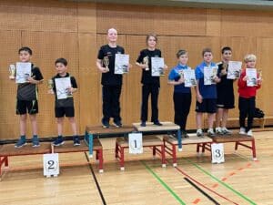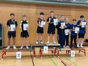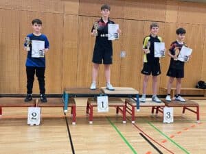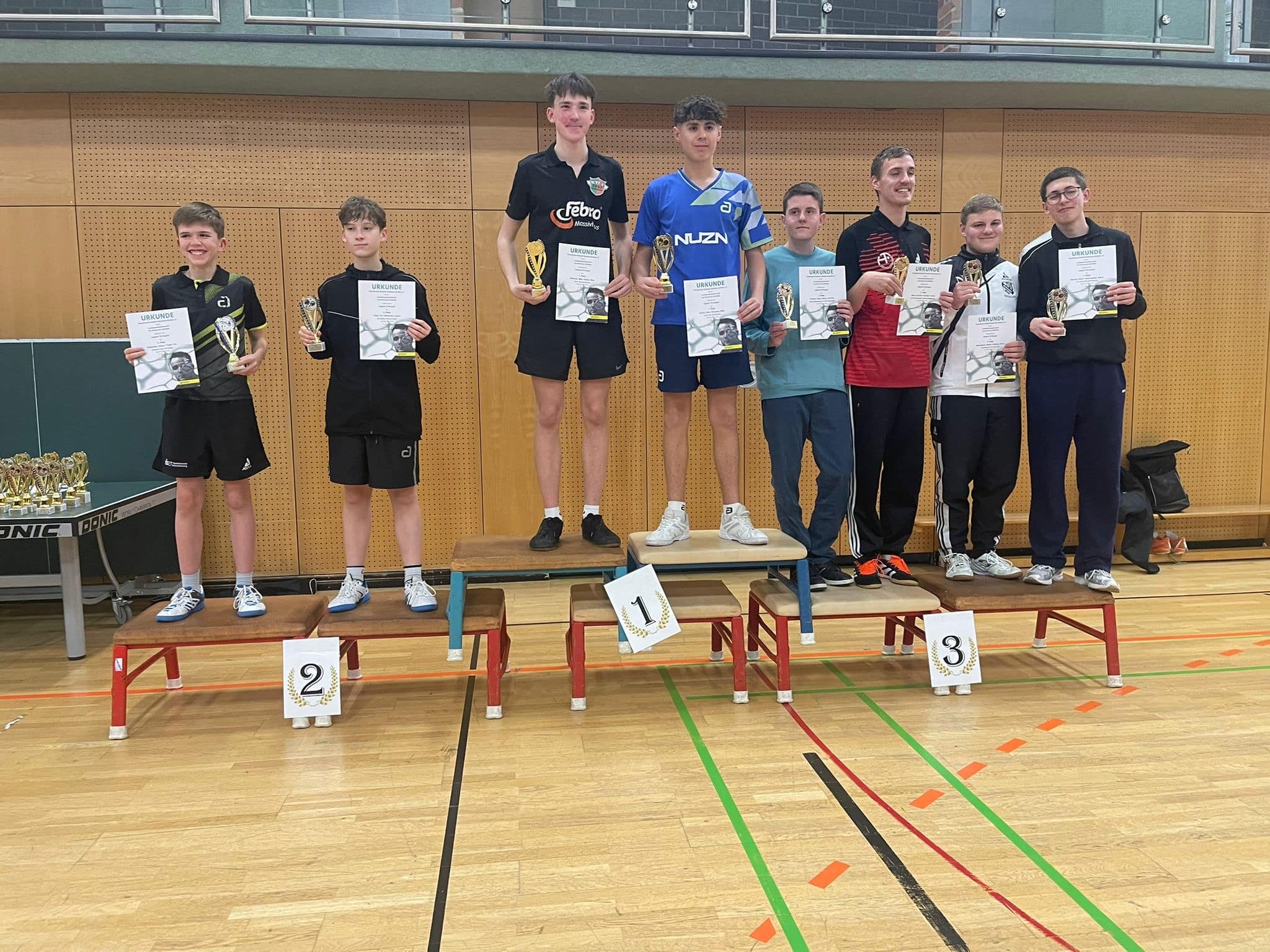 Siegerehrungen Jungen13 Einzel, Jungen15 Doppel und Einzel (von links nach rechts)
