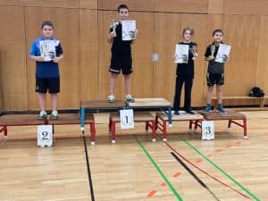 Siegerehrungen Jungen 11 Doppel und Einzel, Jungen 13 Doppel (von links nach rechts)
