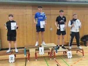 Bei den Jungen19 gab es auch das erwartete Finalduell von Elias Kühne (Union 1861 Schönebeck) und Tim Toetz (SV Zörbig). Dieses Mal hatte Elias mit 3:1 die Oberhand und sicherte sich den Titel. Auf Platz 3 durften sich Mika Bromann (auch Union 1861 Schönebeck) und Niklas Baumgarten (TuS SW Bismark) eintragen.