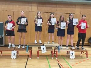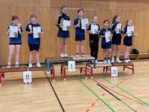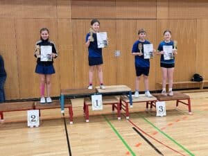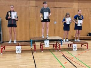 Siegerehrungen Mädchen11 Einzel, Mädchen13 Doppel und Einzel (von links nach rechts)