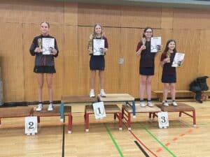 Siegerehrungen Mädchen15 Doppel und Einzel, Mädchen19 Doppel (von links nach rechts)